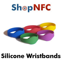 Colored Silicone Bracelet with integrated NFC Chip. Customizable with Screen Printing.