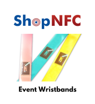 Braccialetti "usa e getta" di plastica colorata con Tag NFC NTAG21x, compatibili con tutti gli smartphone NFC. Personalizzabili con la propria grafica.